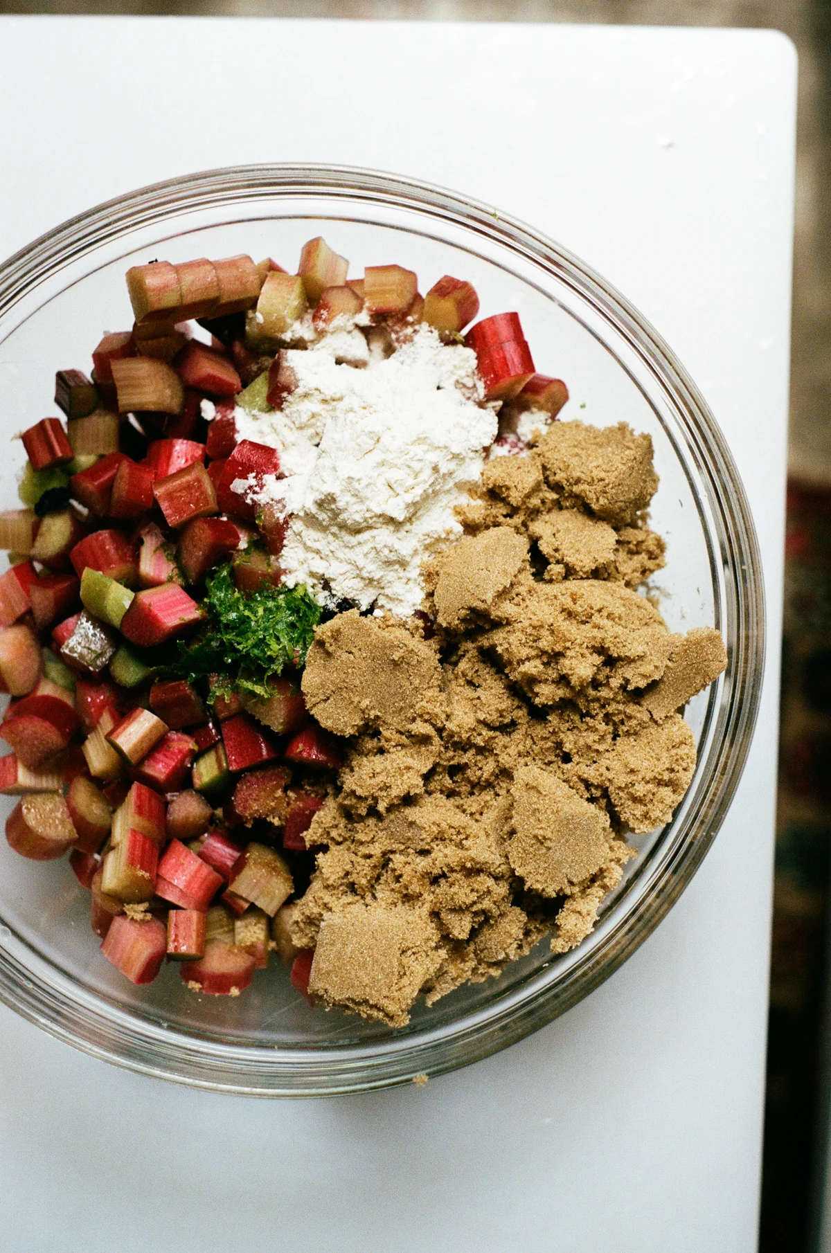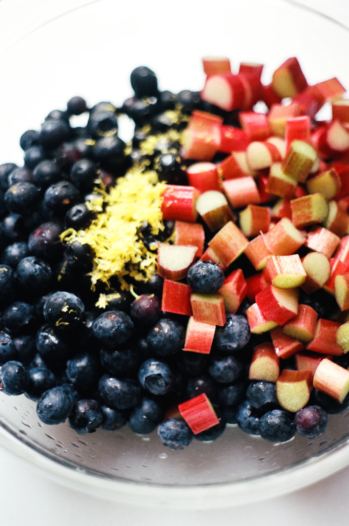 Combine the sugar vanilla bean seeds, lemon zest, flour and salt in a bowl. Add the fruit to a large bowl and sprinkle the sugar mixture over the top, but don’t stir quite yet.