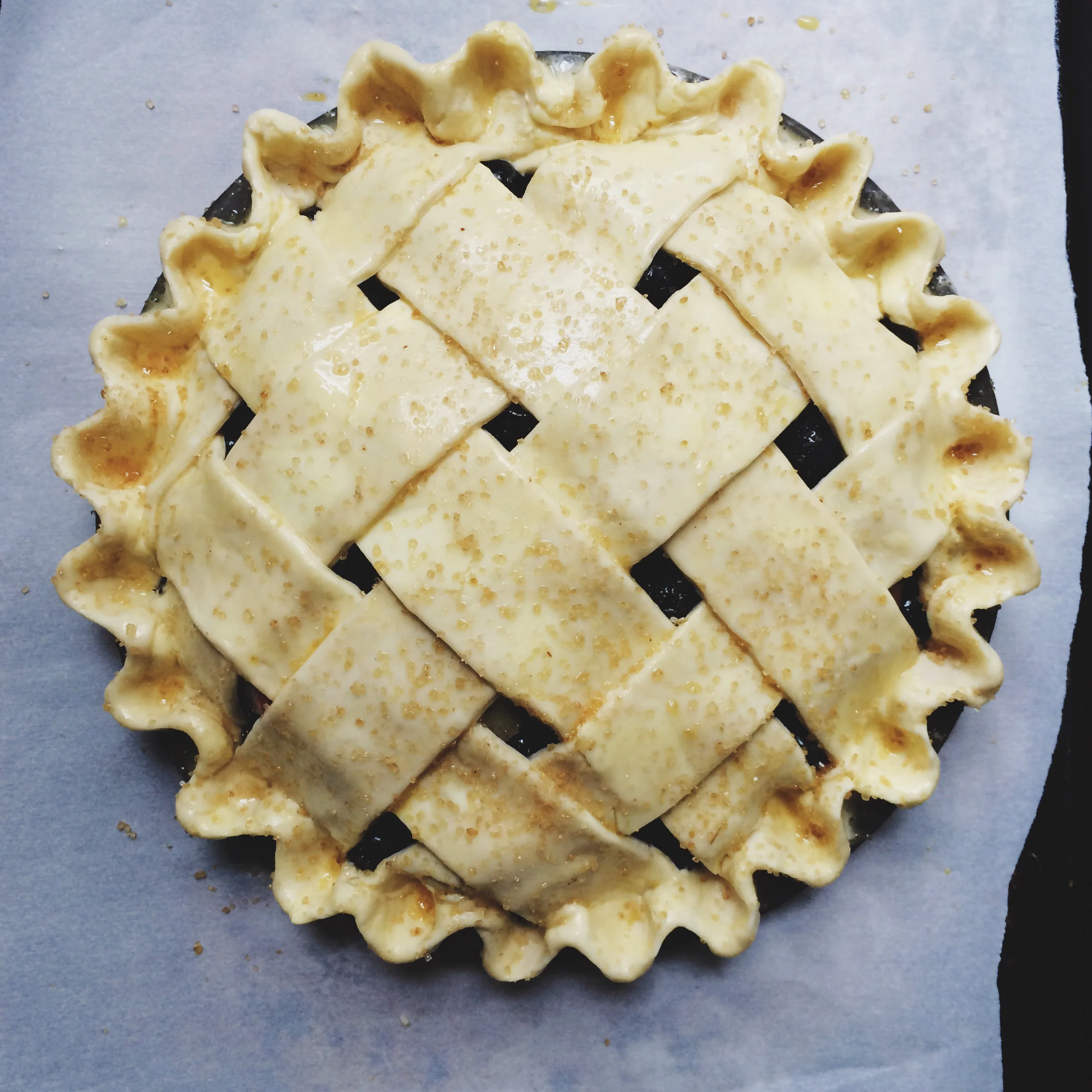 All pie crust is made from the same basic ingredients: flour, fat, water, and salt. I am partial to an all-butter crust because I think it tastes the best. The key to flaky pie crust is to keep the ingredients nice and cold— especially the butter and water—and to work quickly and intentionally. I like to mix pie crust with my hands rather than a food processor or pastry blender because I can control the exact size and shape of the butter pieces for the flakiest results. Add a few teaspoons of sugar if you prefer a sweetened crust.