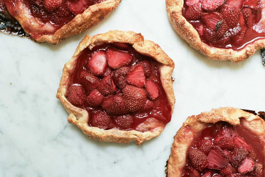 Spread the jam onto the center of the dough, then pour the fruit into the center of the galette. Press gently to compact the fruit into an even layer. Fold the edges of the dough up and over the fruit and press the folds gently to seal. Refrigerate the formed galettes until the dough is very firm.