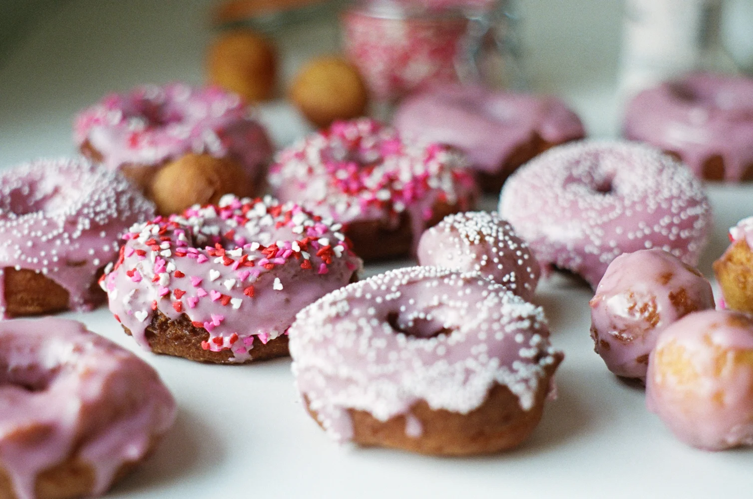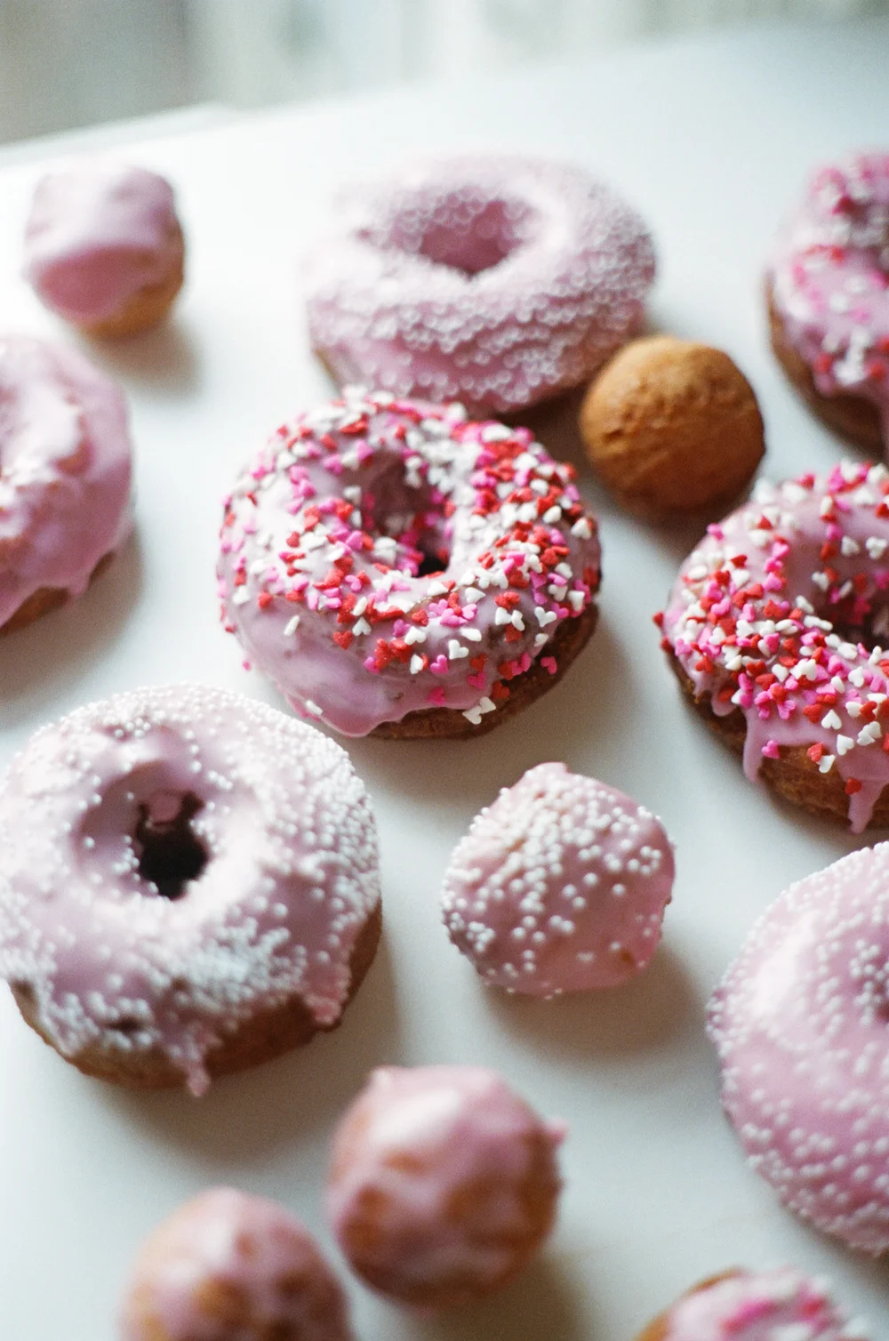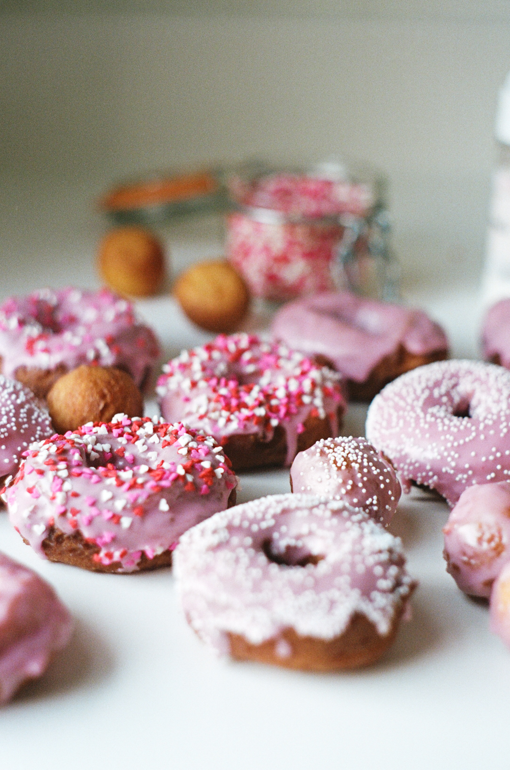 These doughnuts are the Blood Orange Old Fashioneds from my book, all dressed up for Valentine's Day because even though I don't care about the day that much, I love heart shaped foods.